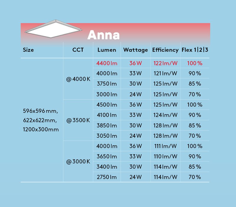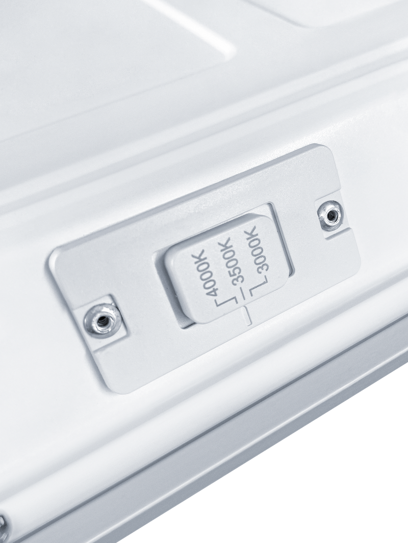 - Tek üründe üç renk sıcaklığı; uygulama kullanımına uygun olarak 3000 K (sıcak beyaz), 3500 K veya 4000 K (nötr beyaz) seçeneğini seçmeniz yeterlidir