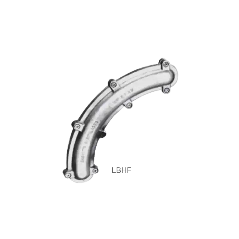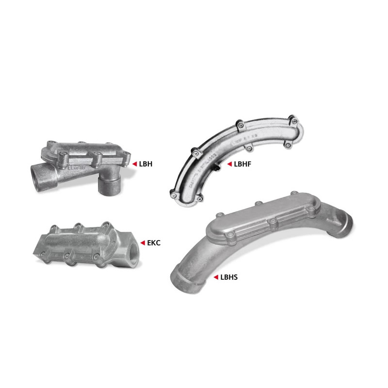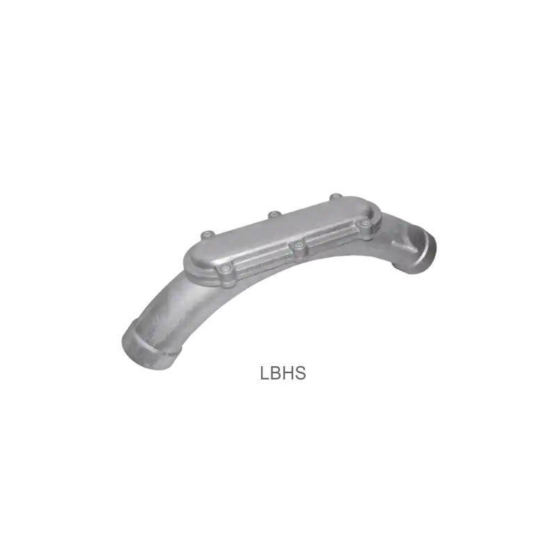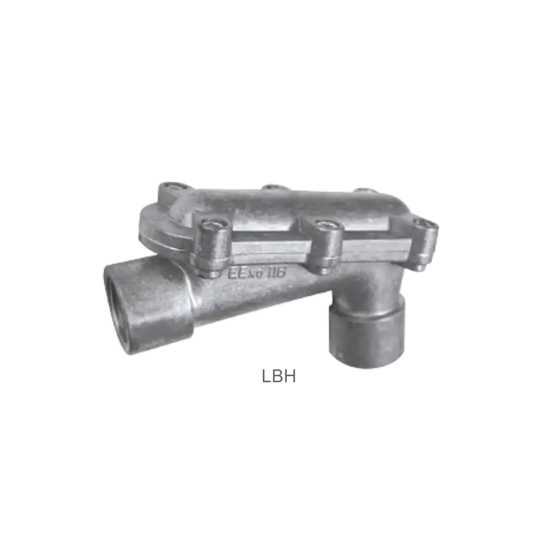 Aleve dayanıklı Ex d açık dirsekler ve çekme kutuları BARTEC LBH, elektrik boru tesislerinin kablolamasında kullanılır. Ayrıca arka tarafta, elektrik kablolarının daha kolay incelenmesine ve boyanmasına olanak tanıyan bir boşluk sağlarlar.