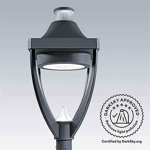 Koyu gri boyalı, düz sertleştirilmiş camlı, IP65 bölmesinde alüminyum reflektörlü, döküm alüminyumdan yapılmış, üstten veya asma 4 kollu fener. Fenerin üst kısmında dekoratif ışık emisyonu / ULOR 0.