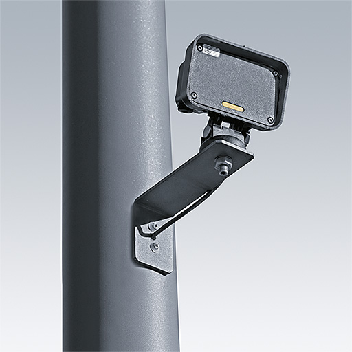 Herhangi bir içi boş sütunun üzerine 3 ila 5 m yüksekliğe monte edilen sabitleme braketli IP65 radarı, maksimum 150 m mesafeden 4 km/s’nin üzerindeki araçları algılamak üzere koridor modunda programlanmış IP66 LED armatürlerle birleştirilecektir. Pilot tel, RF veya PL kurulumlarıyla uyumludur.