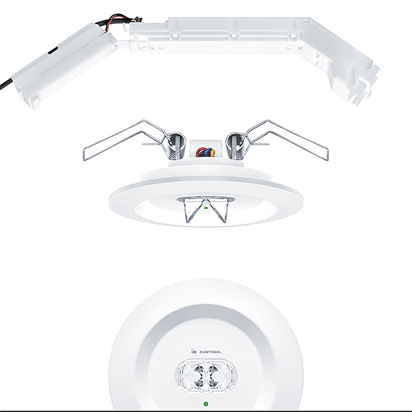 - E1D, E3D ve E8D: Bakımlı veya bakımsız modda 1, 3 veya 8 saatlik acil durum aydınlatması için yerel pil beslemeli, armatür aracılığıyla otomatik test (otomatik test), DALI aracılığıyla isteğe bağlı merkezi izleme özelliğine sahip armatür