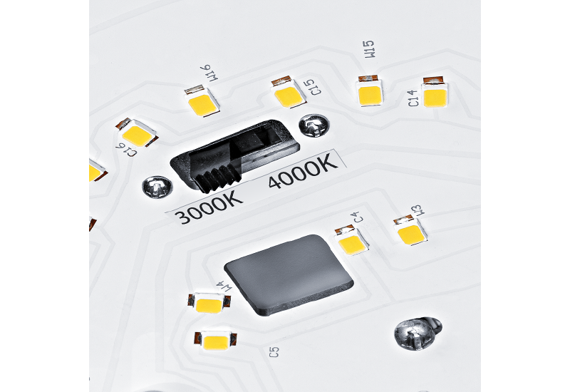 - Tek üründe üç renk sıcaklığı; uygulama kullanımına uygun olarak yalnızca 3000 K (sıcak beyaz), 3500 K veya 4000 K (nötr beyaz) seçeneğini seçin
