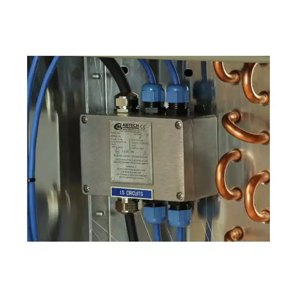 Her bir ünite, alüminyum fan kanatlarına sahip patlama korumalı bir fan, alev geçirmez (flameproof) elektrik motoru ve antistatik bir montaj plakası ile donatılmıştır. Ortam sıcaklığı termostatı, hava işleyicinin klemens kutusuna bağlanabilen “intrinsically safe” (kendinden emniyetli) bir devrenin parçasıdır. Bu klemens kutusu aynı zamanda fan motorunun güç bağlantılarını da barındırır.